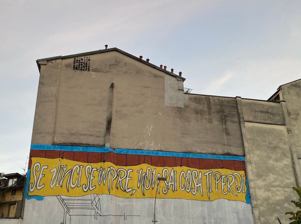 Nell’oratorio del mio quartiere svetta un murales proprio sopra ai campi di basket e di calcio dove giocano i bambini. Dice: “Se vinci sempre non sai cosa ti perdi” e trovo che sia una delle cose più sane e intelligenti da dire a chi si sta approcciando a un contesto competitivo come quello dello sport.