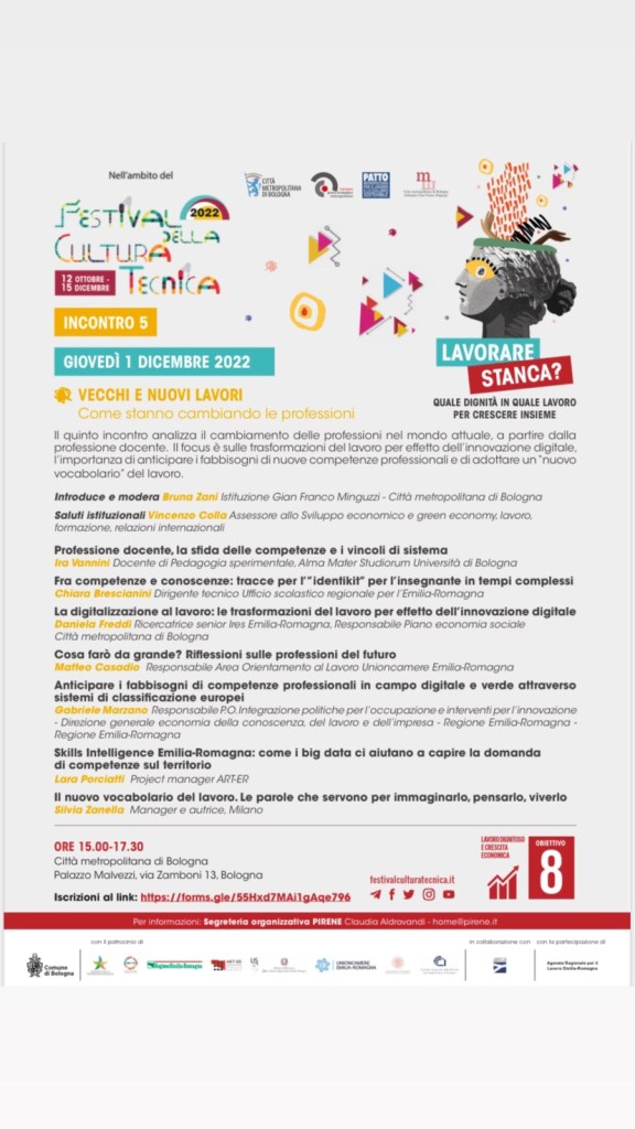 Grazie alla professoressa Bruna Zani e alla mia relatrice di tesi Pina Lalli per avermi riportato nella mia Università – la magnifica Alma Mater Studiorium di Bologna – per parlare di un tema per me così importante, all’interno del ciclo di incontri “Lavorare stanca?”. Se vi va, qui trovate il link all’evento, il mio è l’intervento in chiusura.