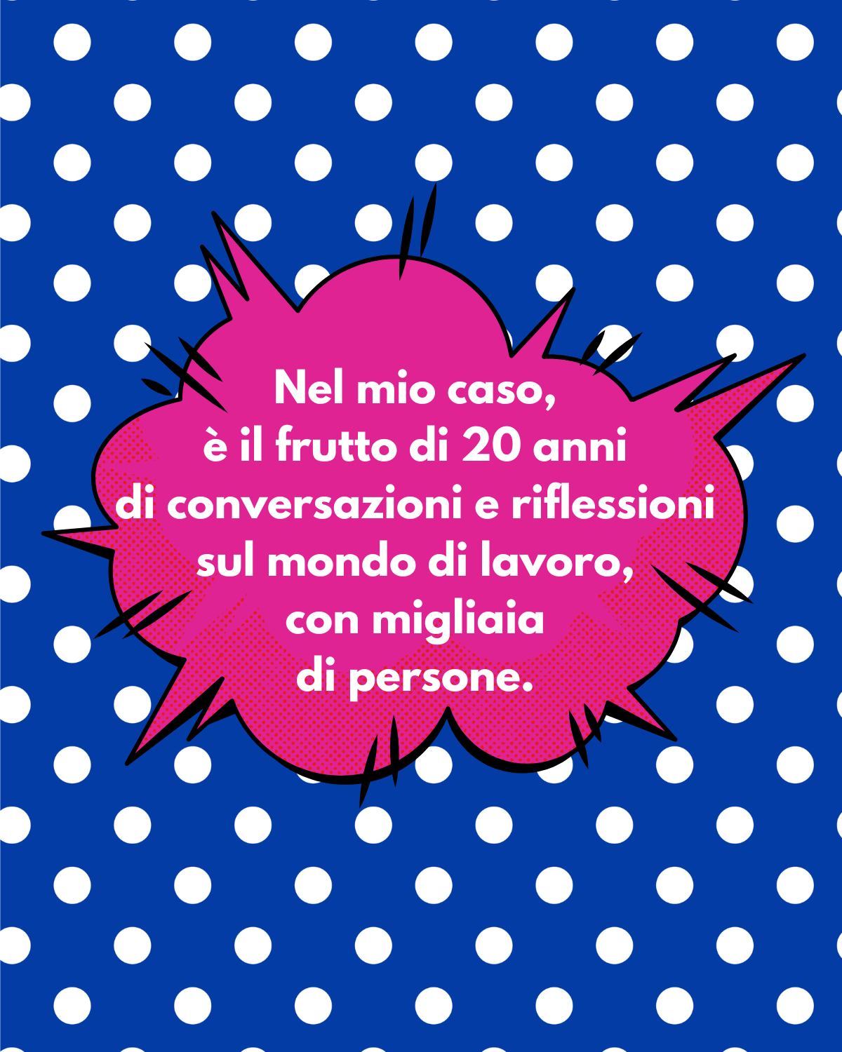 Ma un libro non è mai opera solo di chi lo scrive. Nel mio caso, è il frutto di anni di conversazioni e riflessioni sul mondo di lavoro, con migliaia di persone. Colgo l’occasione di queste righe per ringraziarle.
