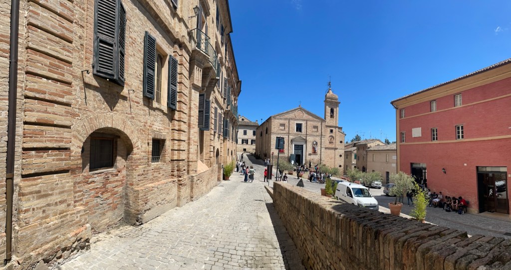 Leopardi ha creato letteralmente un mondo a Recanati. La piazzetta che si intravede di fronte alla chiesa nella foto è stata rinominata “sabato del villaggio” e ogni monumento riporta un verso, locale e, al tempo stesso, incredibilmente universale. Per un po’ di anni, quel mondo gli è bastato.