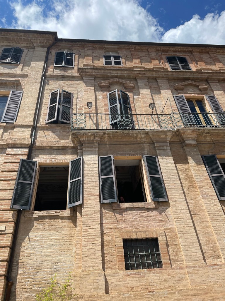 Il palazzo che vedete a sinistra è la casa natale di Giacomo Leopardi. In quella rosa sulla destra, al primo piano, sopra quelle che all’epoca erano le scuderie, abitava Silvia.